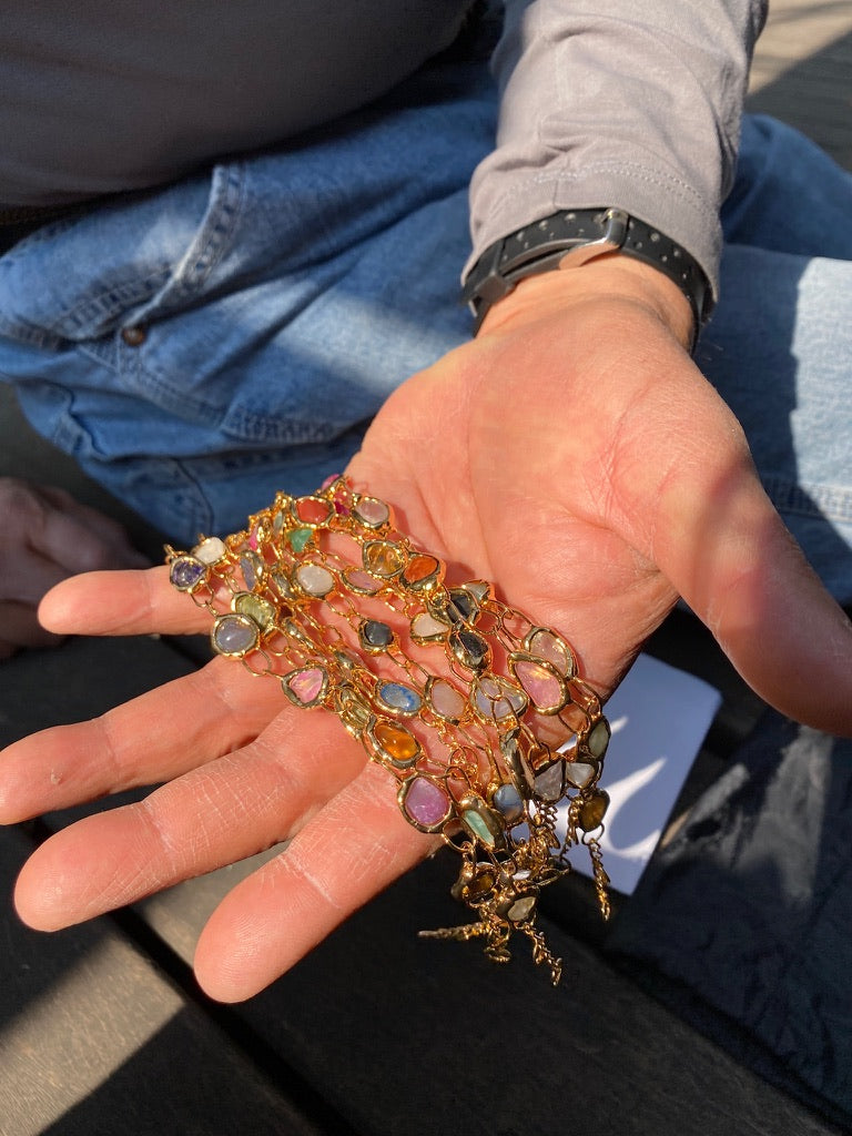The majority of our natural crystal gemstones are carefully sourced from Mexico with a select few from Brazil. A considerable amount of time is invested in the sourcing and selection process, hand-picking the right stones that possess the perfect blend of colour, size and shape for each specific design. Embracing the beauty of raw gemstones, Pablo attempts to select those that contain minimal natural imperfections, however when found, these imperfections are what make each Tea and Tequila piece so unique and special.