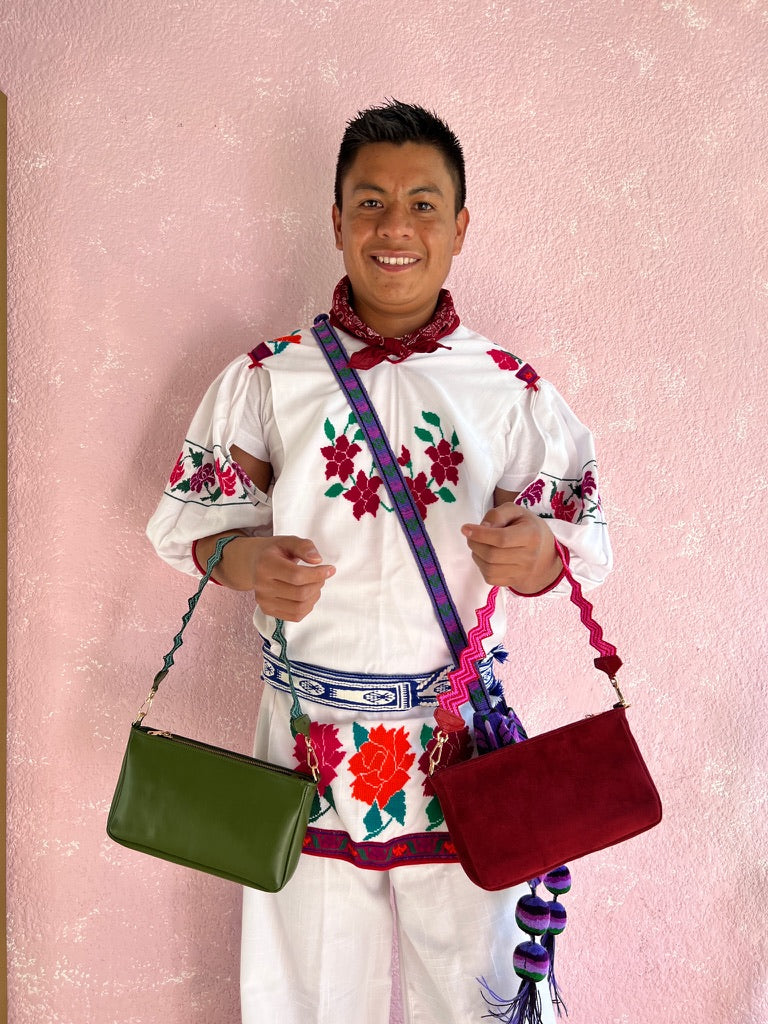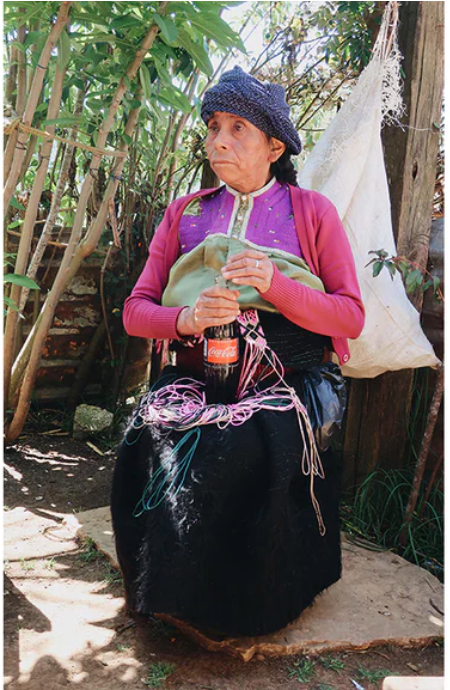 Doña Griselda, Jenny, Anita and Sophia live near San Juan Chamula, in an isolated indigenous community in the mountains of Chiapas, known for its rituals and crafts.These amazing women hand weave our colourful bag-straps.They speak in Tzotzil, an indigenous dialect, with just the younger members of the family communicating with us in Spanish as well. Many have been taught to weave macrame threads like these from a very young age. Originally they were created in order to carry large bundles of firewood, so they are extremely strong and resilient!