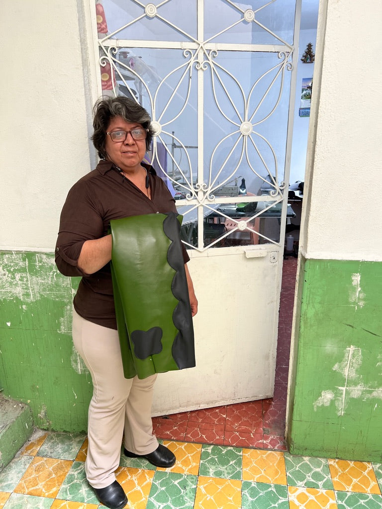 We are very happy to work with Carmen and her team at her workshop in Mexico City. Each piece of clothing is prepared and constructed by hand. Carmen has been passionately involved in this field since 2001, and her love for what she does is evident in the way she and her team skillfully handle the unique materials we work with such as hand-loomed fabric or cactus leather. Carmen’s team consists of: