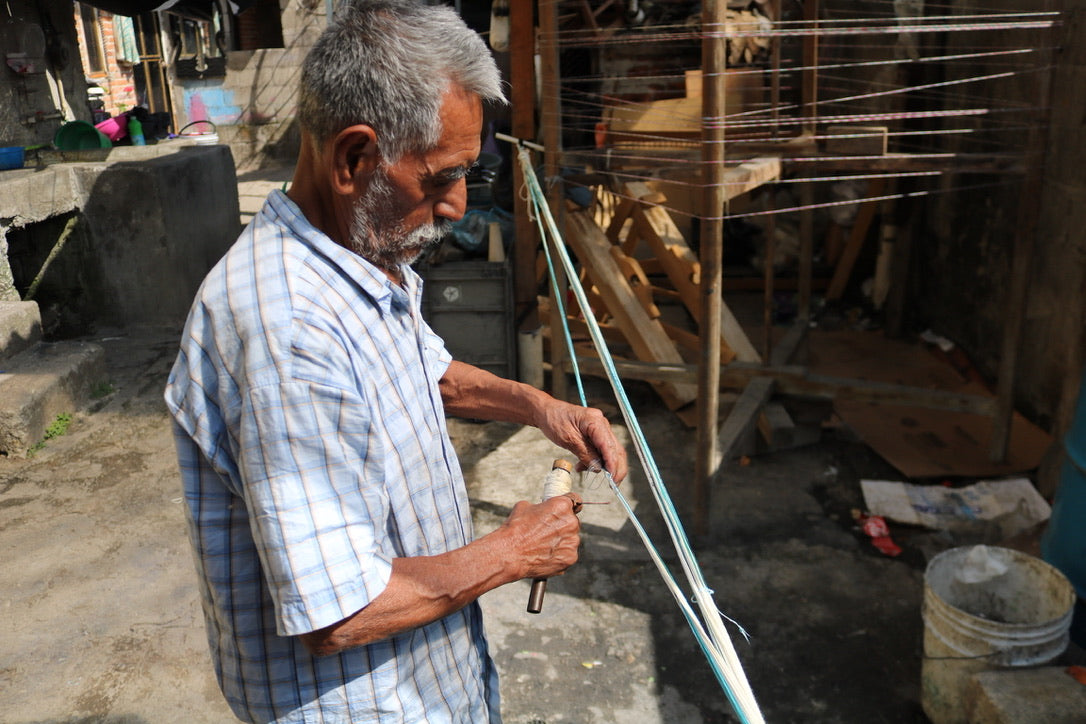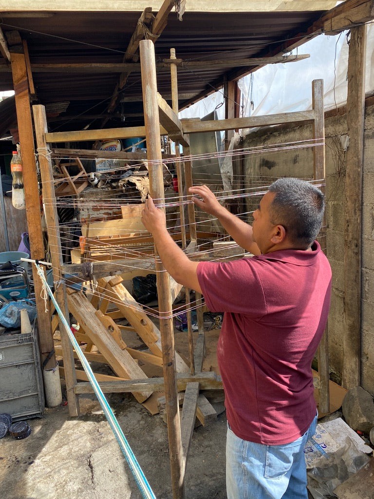 César and his father are skilled pedal loom crafters based in Tenancingo, Estado de Mexico