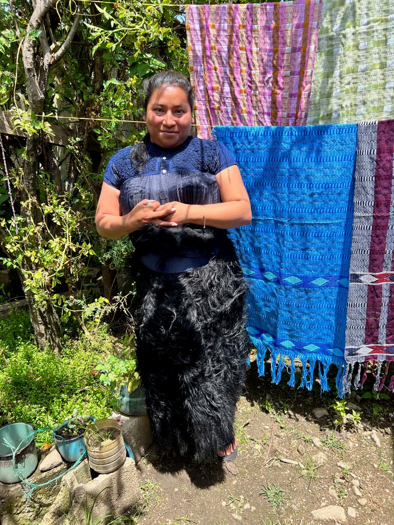 This ancient technique is created by preparing the threads which in atole, a traditional mayan corn drink. Once the threads are dry, the artisans draw lines on them by hand. These lines are indicators as to where the knots are tied to separate what will be dyed. The yarns are dyed using the Ikat technique, which creates patterns on the fabric based on knots, giving a marbled or ribbed appearance. Once dried, the knots are cut and the threads are rolled into a ball (bolita). Little by little the ball is unravelled to be placed on the loom and weaving begins. The Rebozo de Bolita is known for being a very fine, woven cotton. The weave is so tight and strong that the local indigenous women used them to carry huge ceramic pots around.