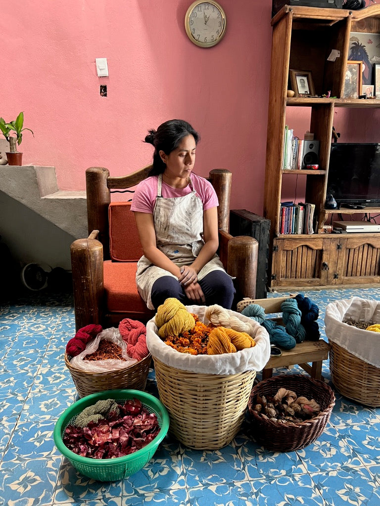 Luna is a wonderful textile artist based in Mexico City. She specialises in natural dyeing and uses plants and flowers native to Mexico. This ancient traditional craft is a time consuming process that enables Luna to connect with nature. There is a trend that textile artisans are reverting back to natural dye, in an attempt to revive ancient traditions and protect against risks of chemical dyes.