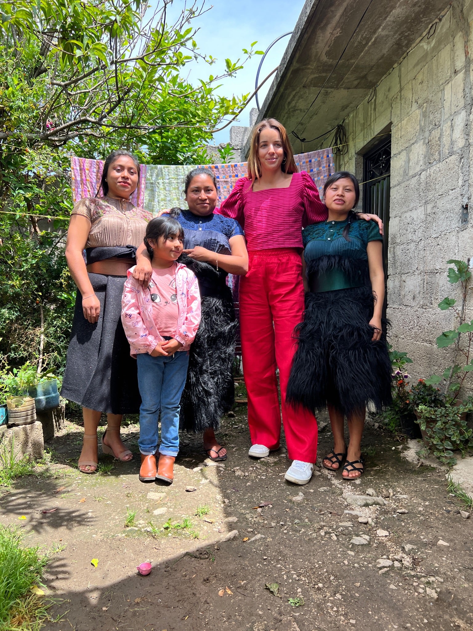 The Hernandez-Lopez family are based in Zincantán, a small Indigenous town in the highlands of Chiapas. There, the family, led by head weaver and mother Petrona Lopez Lopez create hand-woven fabrics using a telar de cintura (waist loom). The entire family unit helps out including Petrona’s mother Antonia, nieces Maria Josefa and Laura Estefania and sister Isadora and her husband Mariano who coordinates, even their young daughter Rosa is learning by example, Petrona’s mother Antonia, nieces Maria Josefa and Laura Estefania and sister Isadora all come together at their home to weave. They have mastered the skilled craft of weaving with patience , upholding cherished family tradition which has been passed down through generations and we hope will continue to be.