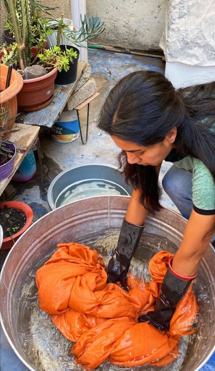 Luna uses items such as onion skins, avocado stones, indigo plants, mexican logwood and many more natural sources to create the vibrant colours that we use at Tea and Tequila. Mindful of the water wastage in the natural dyeing process, Luna takes proactive measures to minimise it. She repurposes any leftover water by utilising it to wash her patio, water her plants and even flush her toilet!