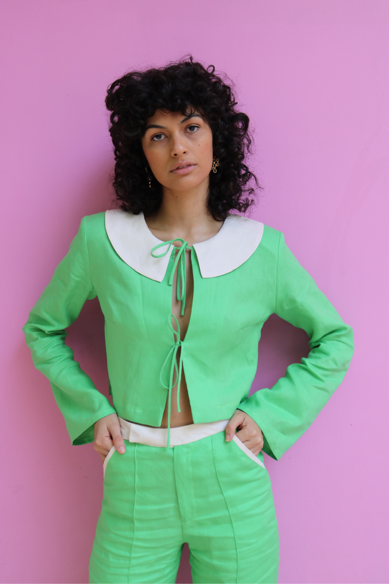 Guava Green Linen Marimar Top